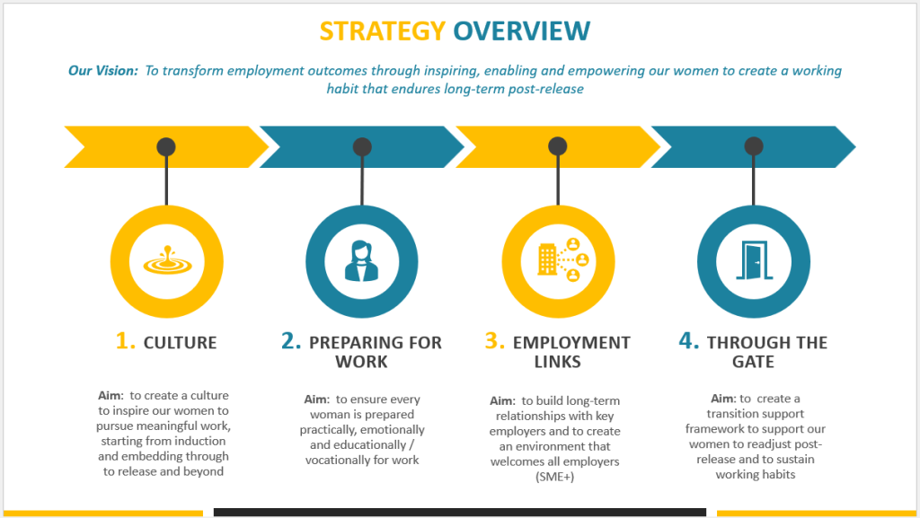 - Supporting long-lasting employment – this will continue “through the gates”, helping our women to readjust to society post-release through mentoring and support
